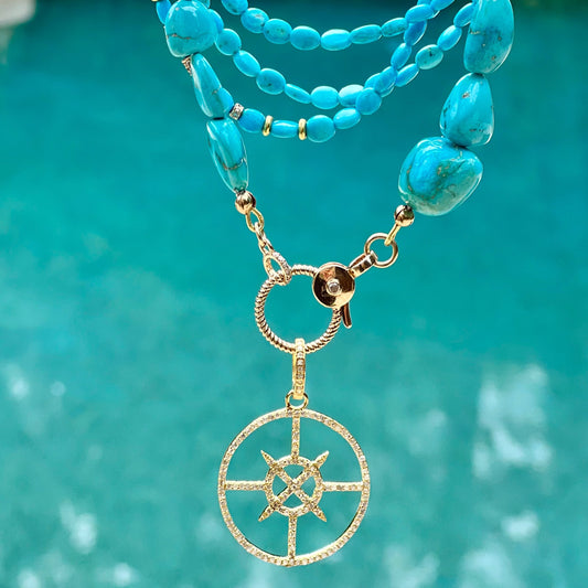 14K Enamel Turquoise Heart with Diamond Pendant.