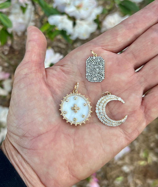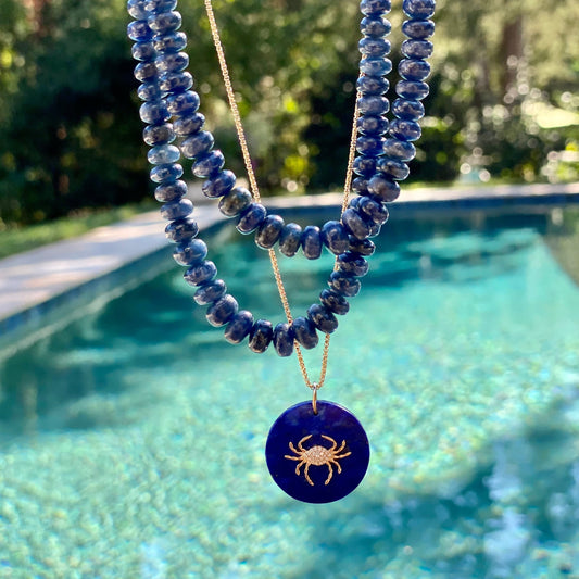 14K Gold Diamond and Lapis Crossed Arrow Pendant with Moon and Star