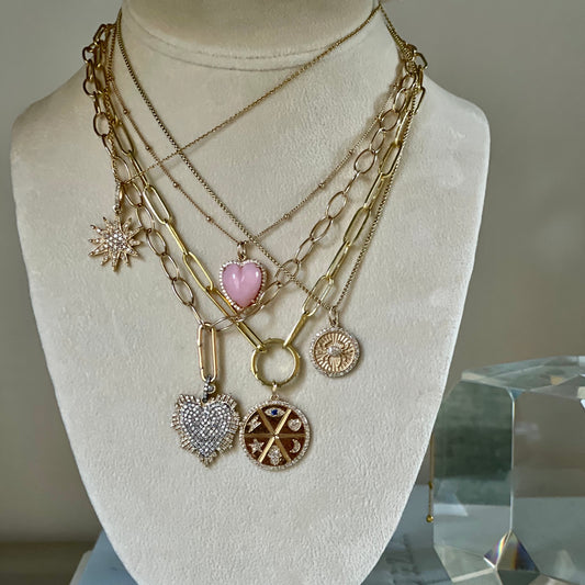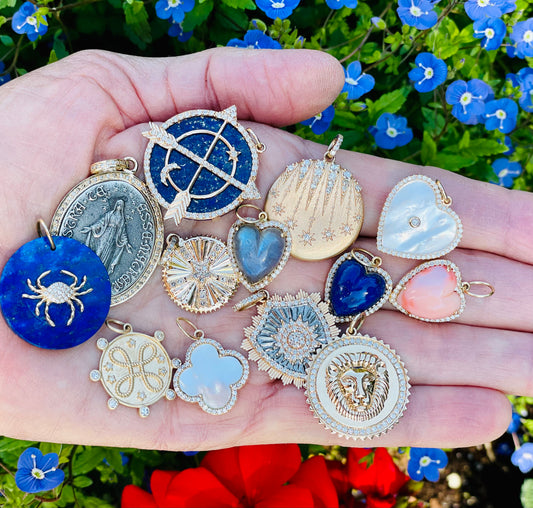 14K Gold and Sterling Silver Diamond Eye and Heart Guardian Pendant