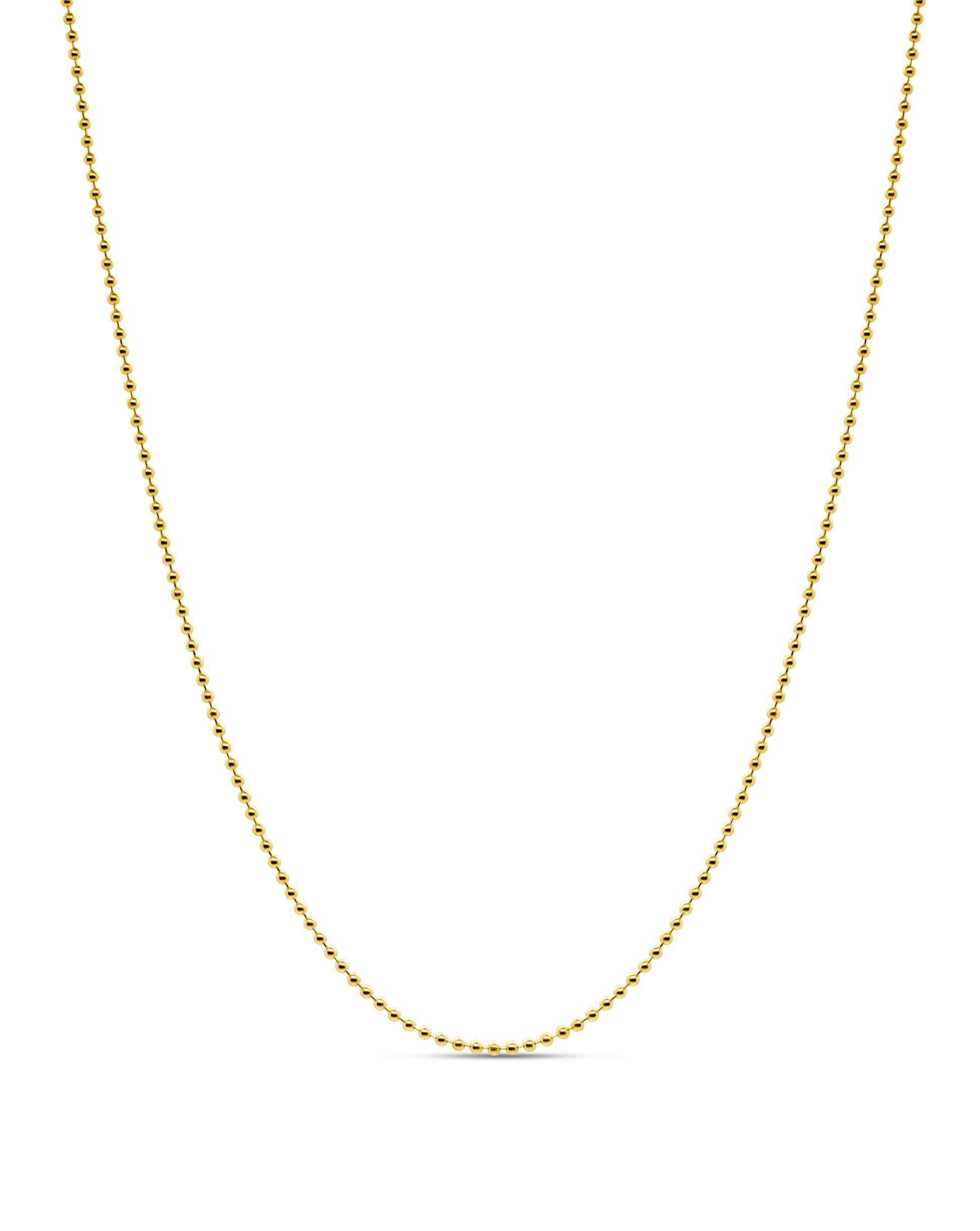 Look beautiful and chic with our 14k gold bead chain. This gorgeous chain is 16 inches long, making it the perfect size for any ensemble. Whether you choose to wear it as a necklace or layer it with other jewelry pieces, your signature look will shine. Plus, the 14K gold won't irritate your skin or cause breakouts. Approximately 1mm.