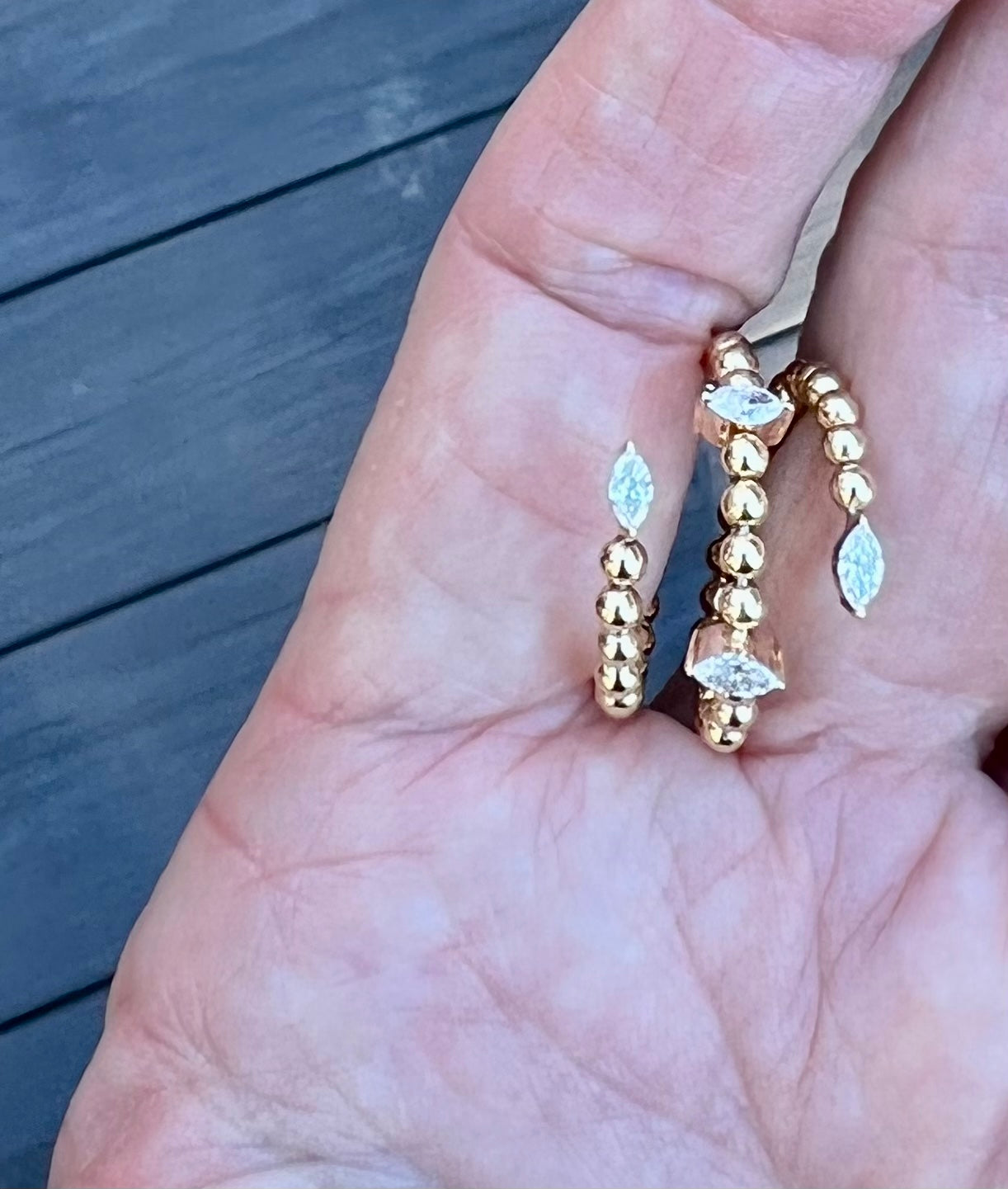 Take her breath away with our stunning Marquise Diamond Wrap Ring. Crafted from 14K gold and featuring a delicate, intricate band of marquise diamonds and beaded band, this piece is truly breathtaking. Perfect for everyday wear, this statement wrap ring is designed to take heads with its shimmering beauty, instantly elevating any look you put together. Feminine and utterly eye-catching, it's sure to become an instant favorite in your jewelry collection. Whether your purchase it as a treat for yourself or a special gift for someone you love, this elegant ring will quickly become their favorite accessory. G 2.919 grams. Â D 0.41 carat. Size 7.5