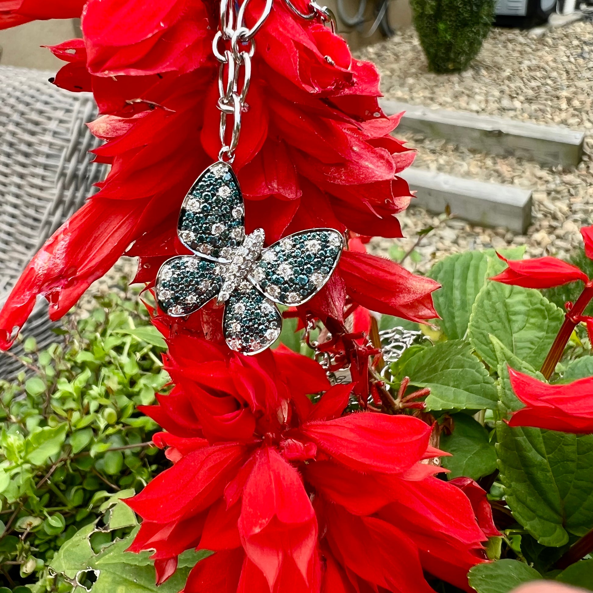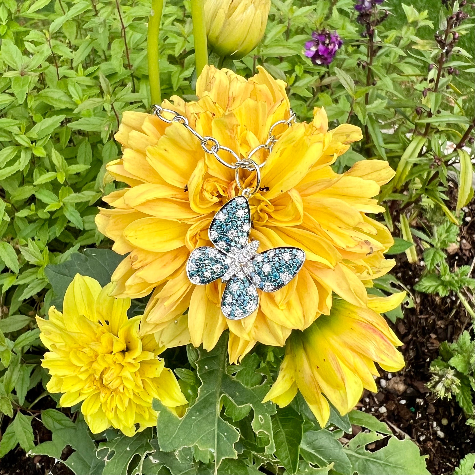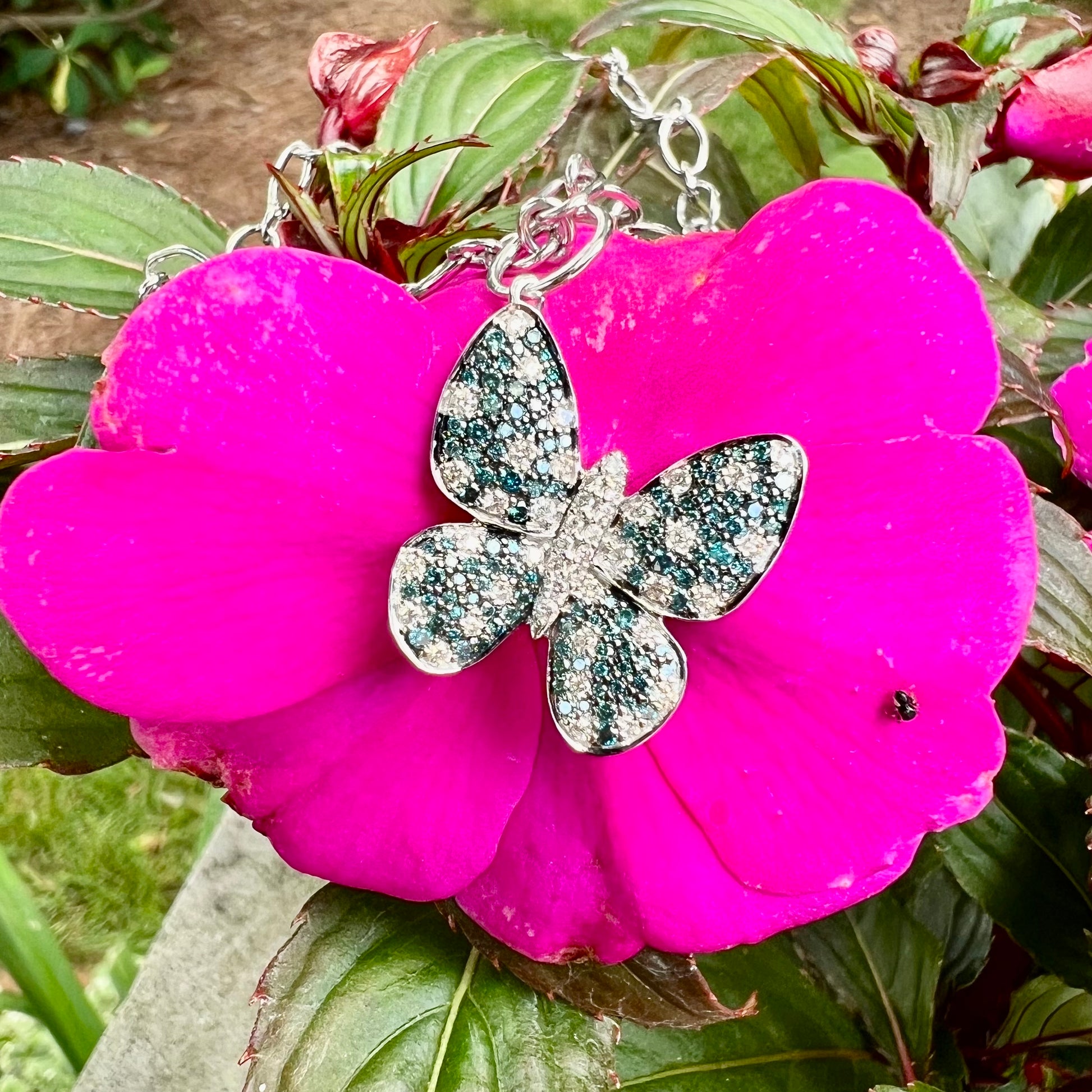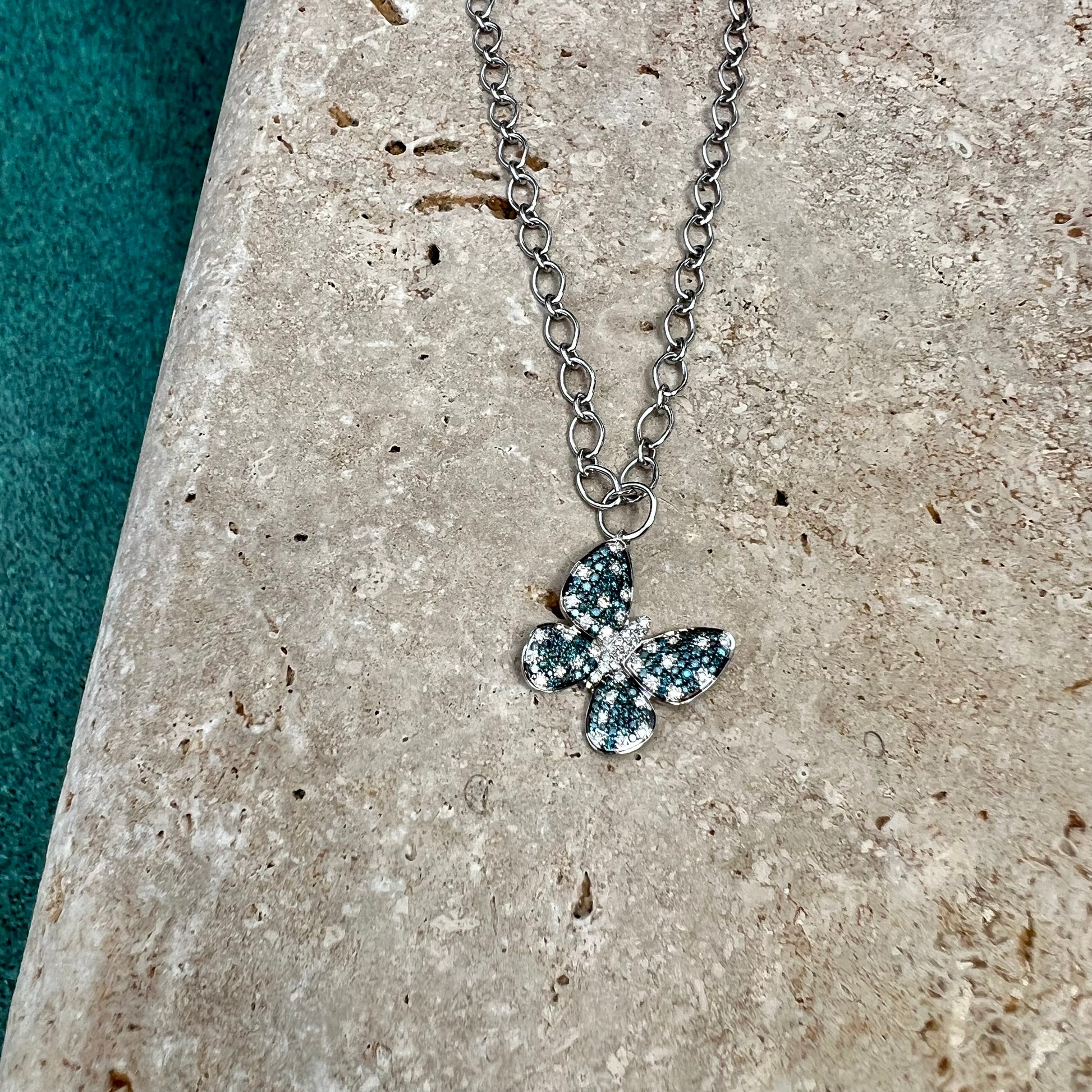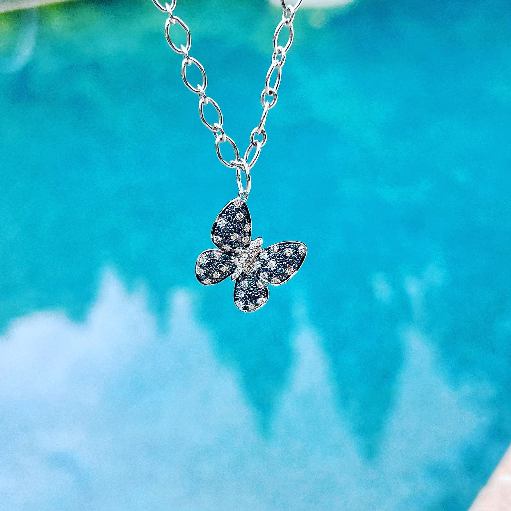 14K Gold Blue and White Diamond Butterfly