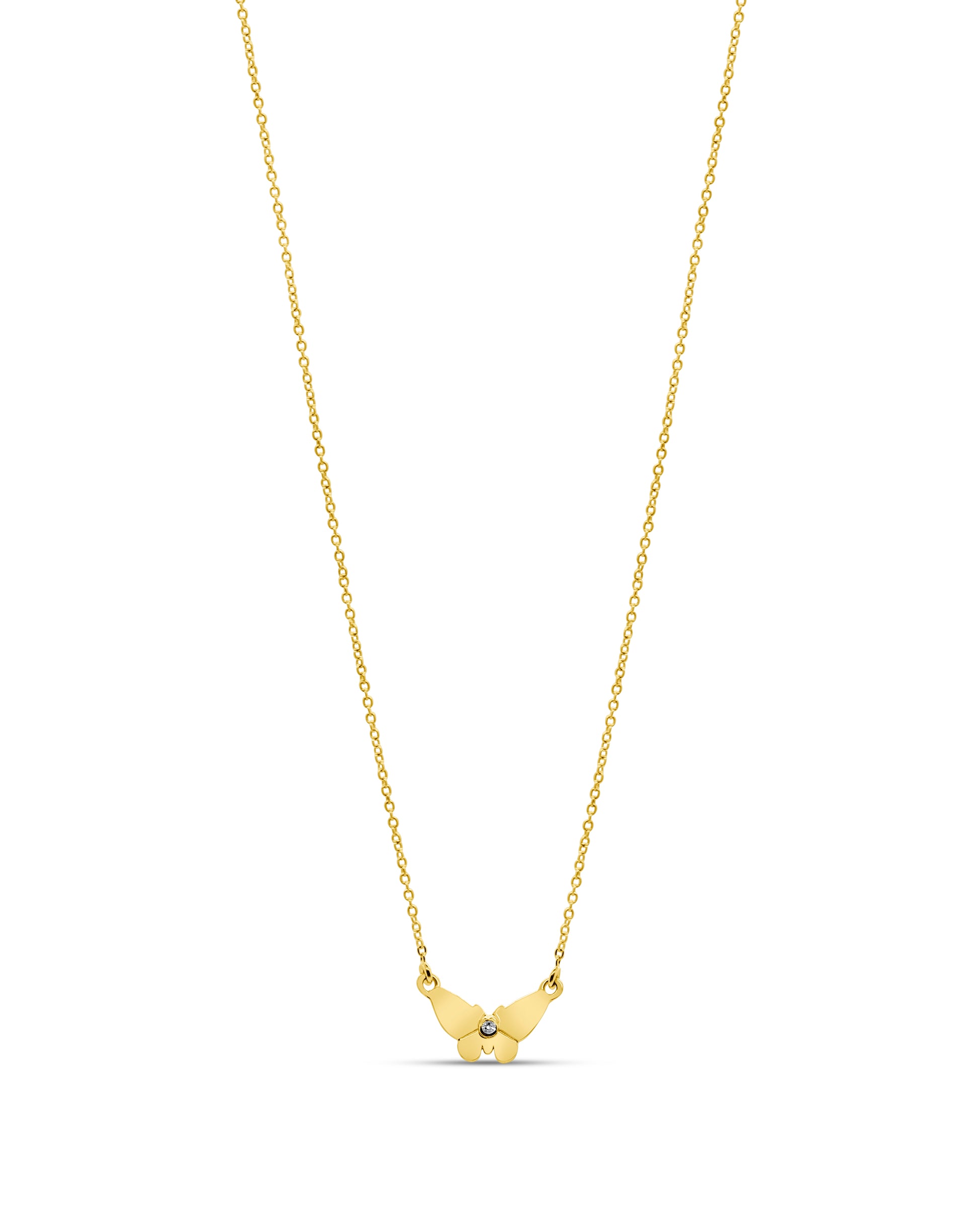 The Papillon. Chic and modern butterfly necklace in 14K gold with a center diamond. Adjustable 16, 17 and 18 inches. Love this for everyday wear. Butterflies symbolize faith hope and transformation. This is makes a beautiful gift.