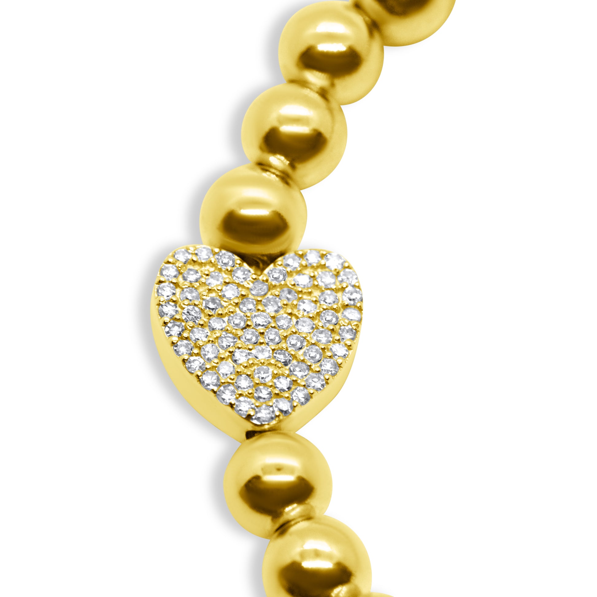 Our beaded heart bracelet has diamonds on both sides of heart. Wear these stacked with out other bead bracelets and our oval diamond bracelet for a polished look. Small heart: G 0.743g. D 0.27ct. Small a heart is 6mm with 5mm 14k gold beads.