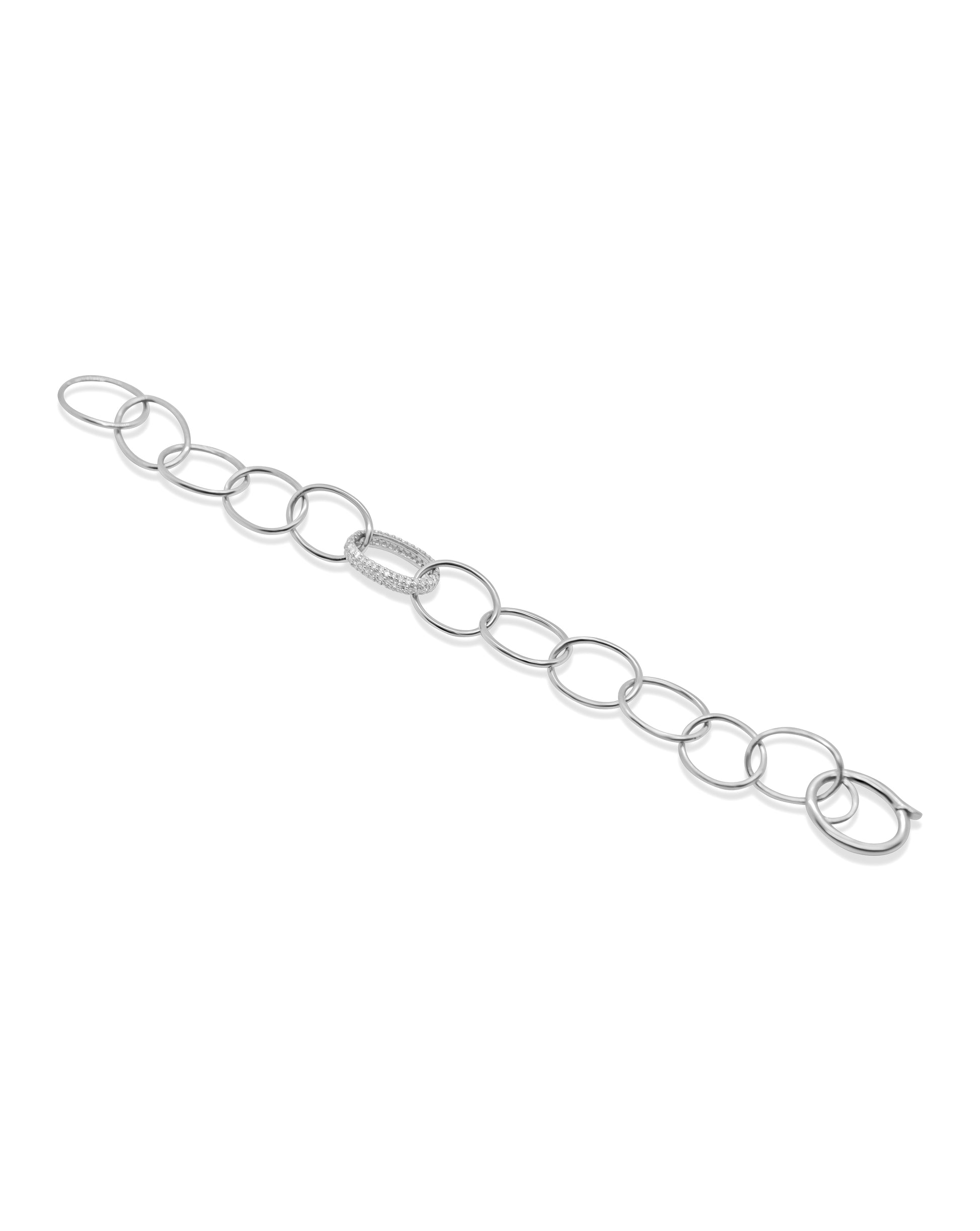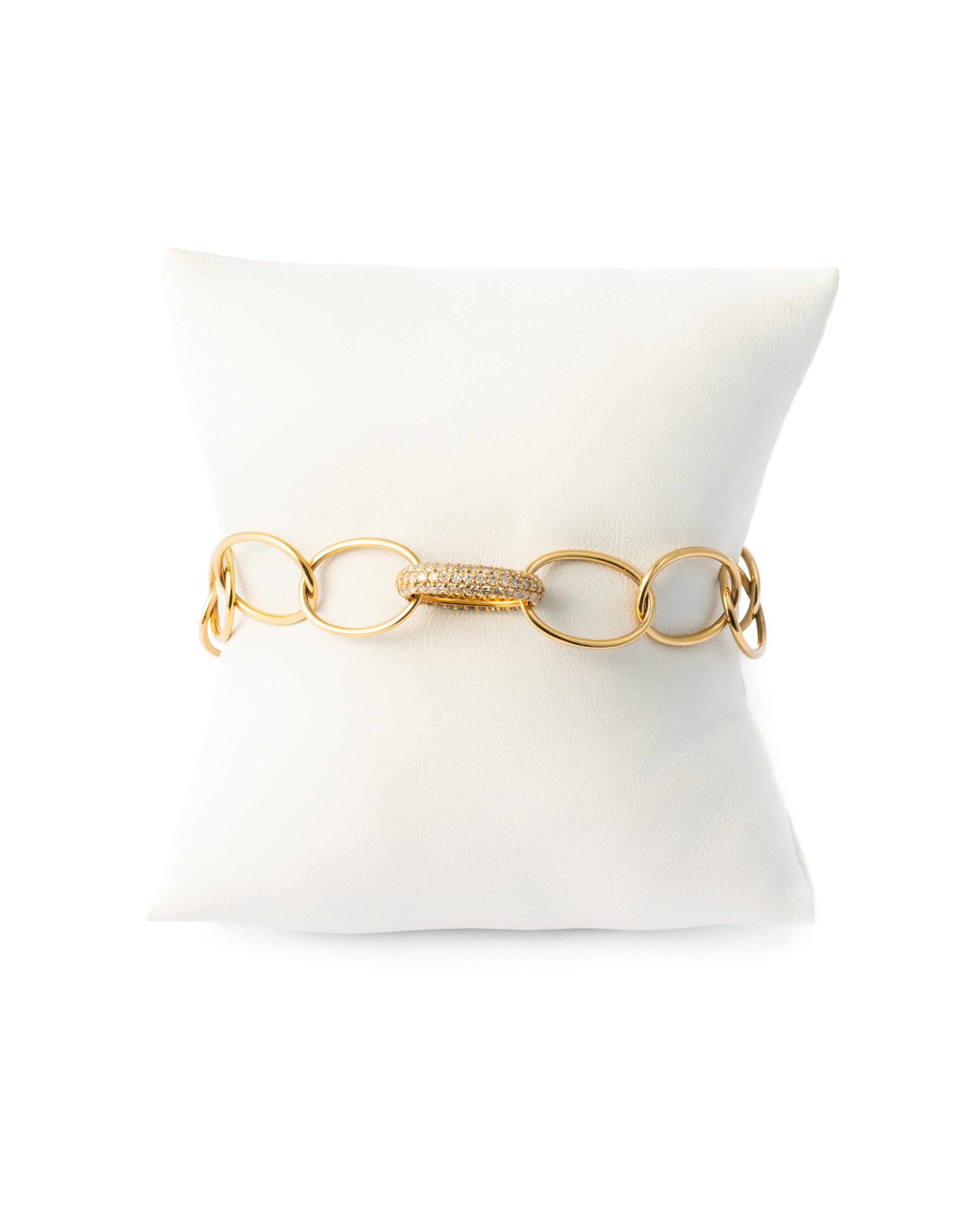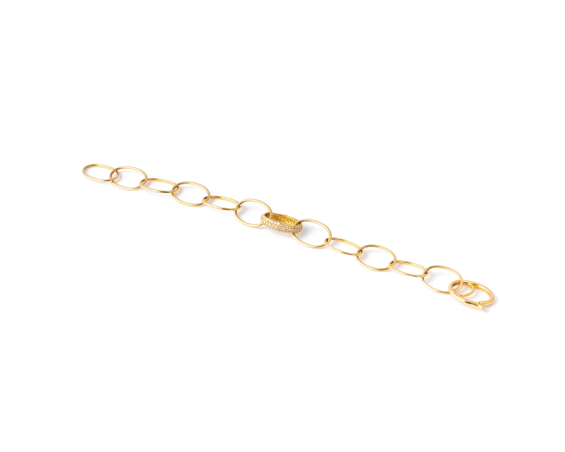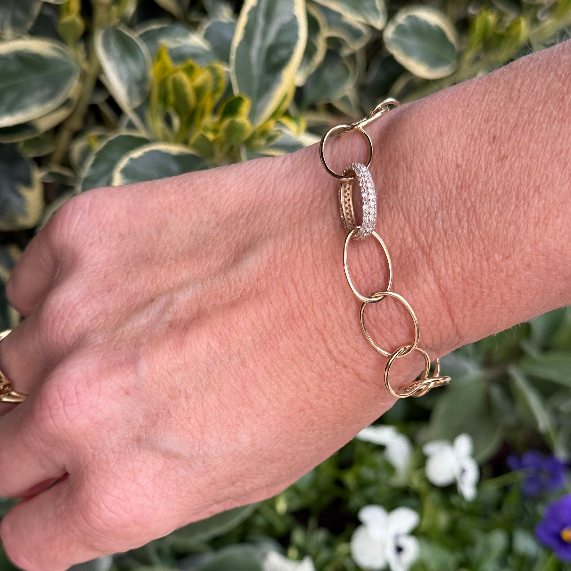 Delicate 14K gold and pave diamond elegant link bracelet. Our Chain Bracelet No.83 is great for stacking or big enough to stand alone. Links are approximately 14mm by 16mm. Other sizes are special order. 2-4 weeks.