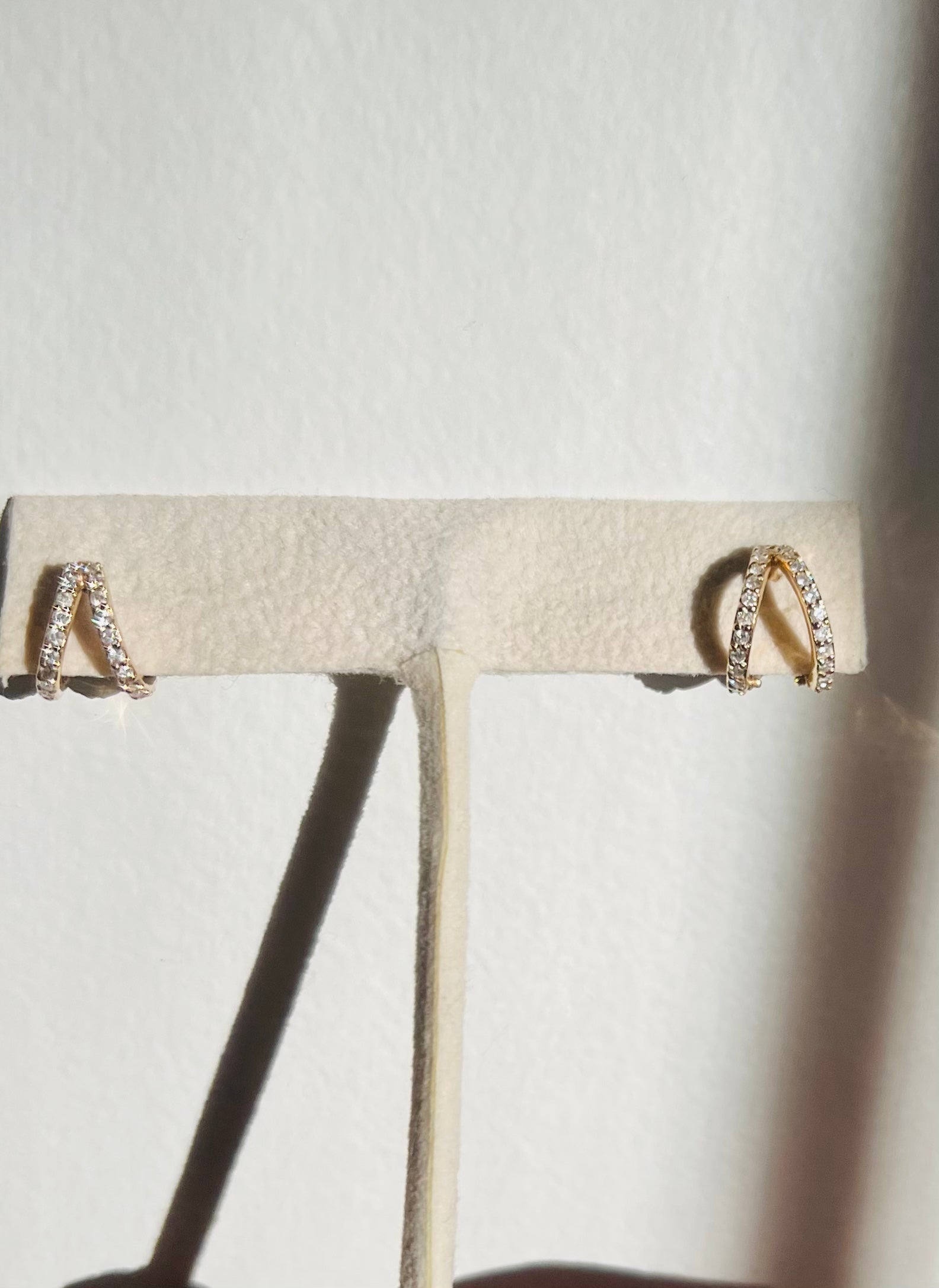 14k gold Split Huggie Hoop earrings. Gold 2.560g. Diamond 0.33c. Approximately 1/3 inch with clip closure. A classic much needed everyday huggie.
