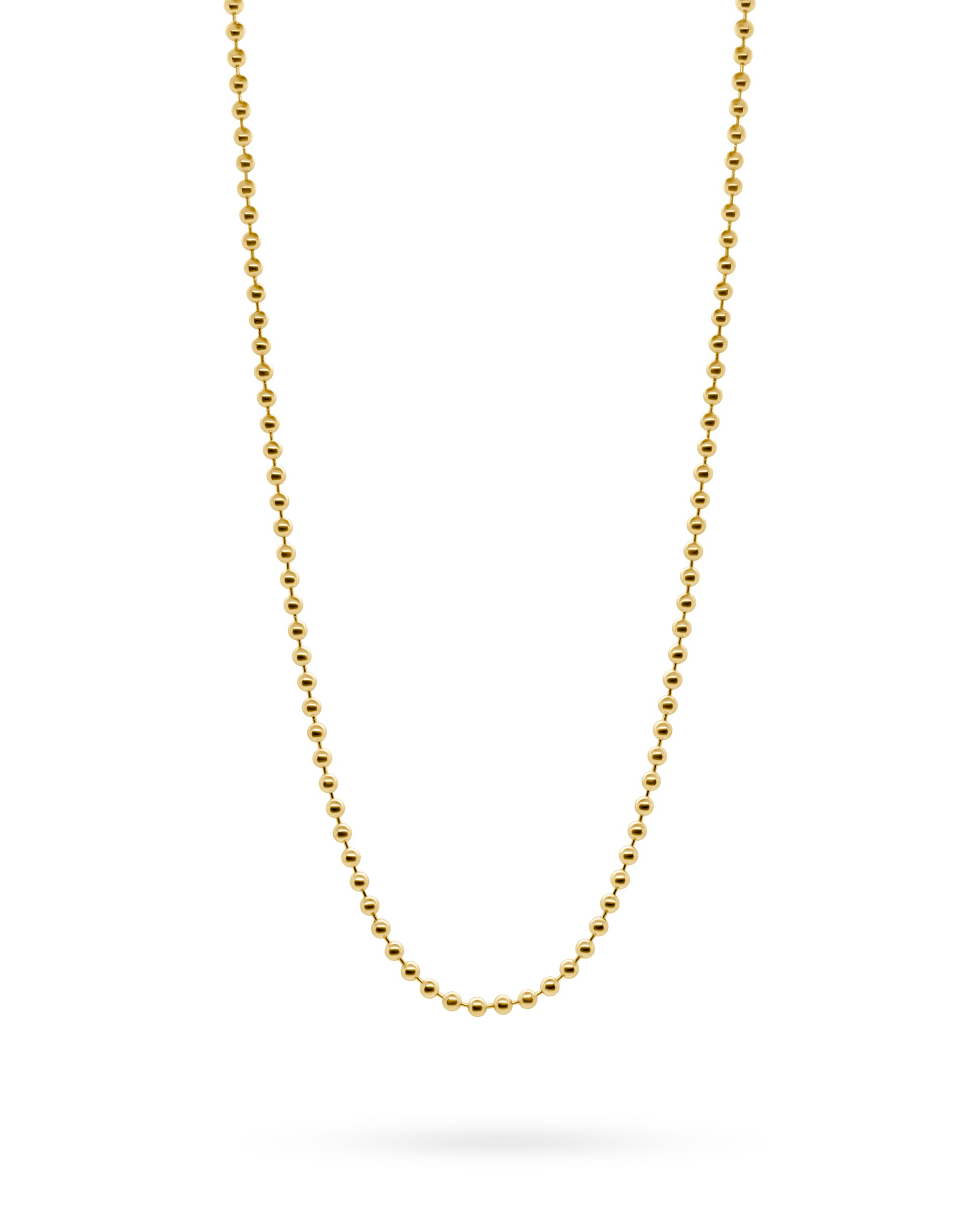 Beautiful heavyweight bead chain with solid beads approximately 3.5mm. Gold 14.2 grams. 18 inches. Lobster closure. Handmade in Turkey.