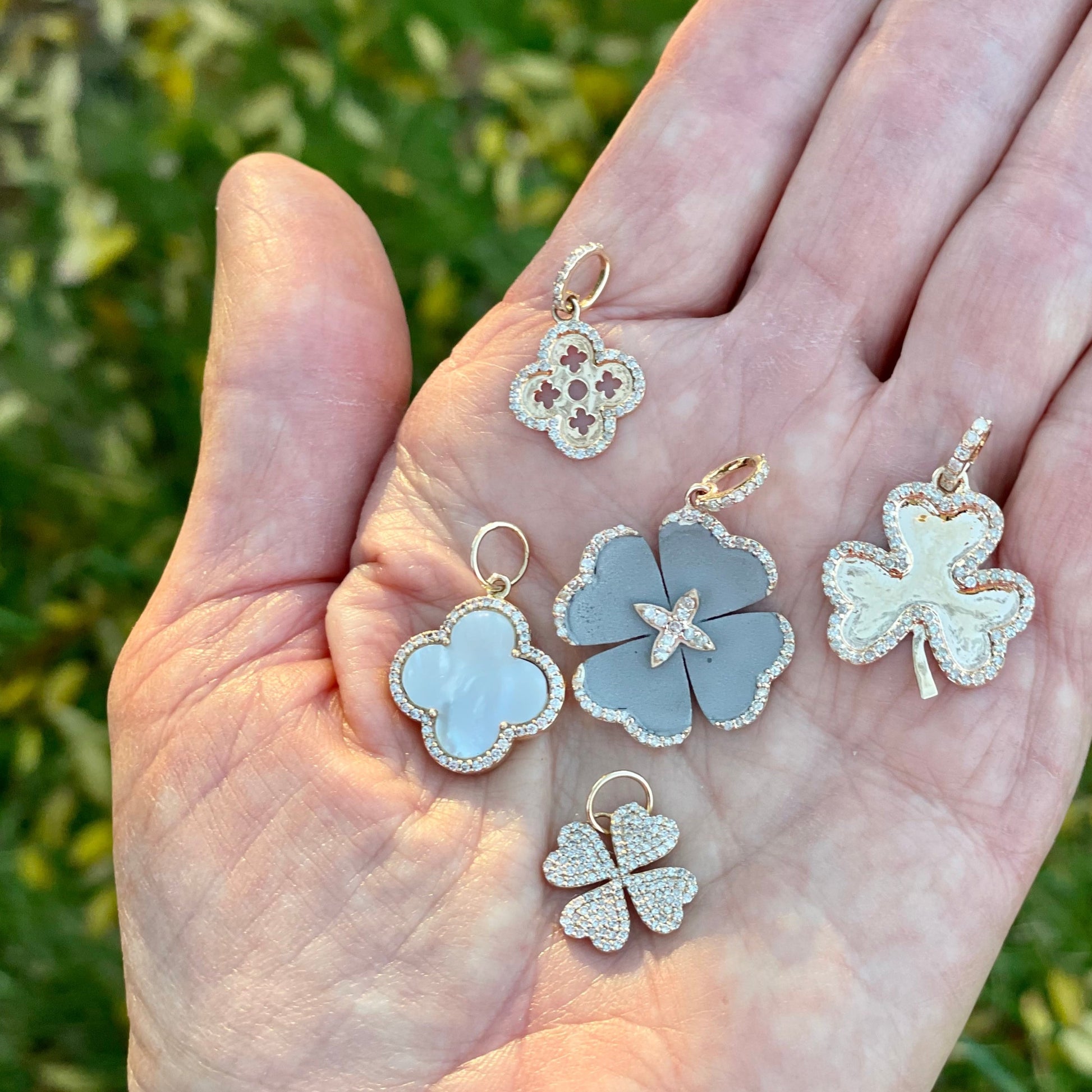 14k gold clover with diamonds on the edges of the clover. Gold 3.372 grams. Diamond .49 carat.