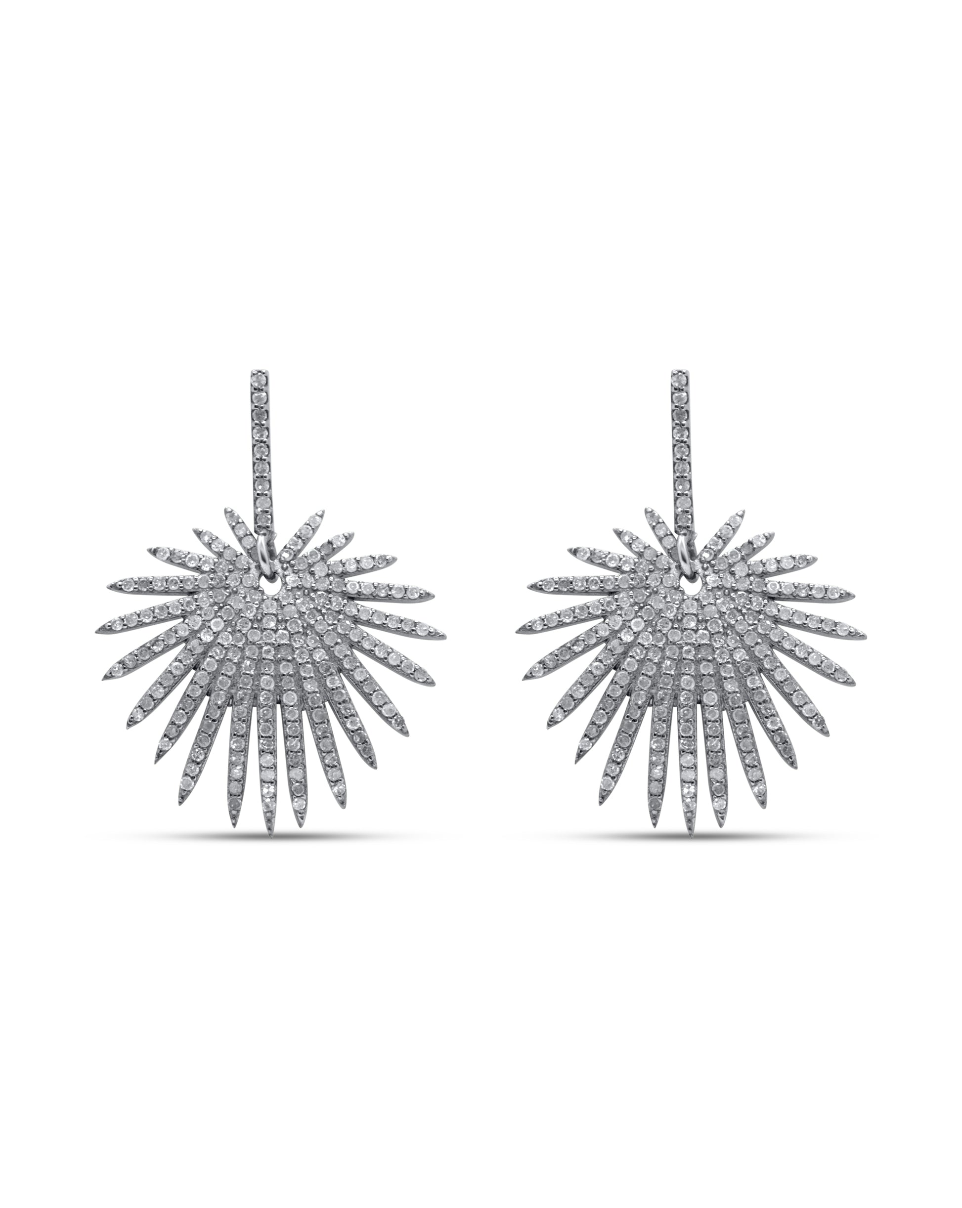 Conjured by the rustling sounds of palm trees on Kiawah Island, these diamond earrings bring you back to the marshland. The earrings are lightweight, like feathers. They are approximately 1.25 inches long. Featuring all over diamonds for a captivating look.