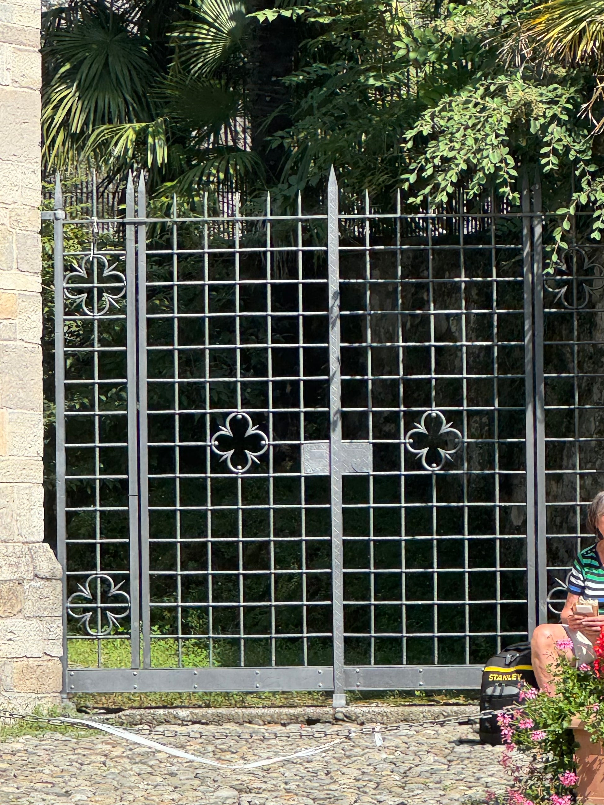 Alleyways along Milan’s Via Santo Spirito open into private gardens and courtyards. These hidden spaces are guarded by iron gates adorned with whimsical designs.