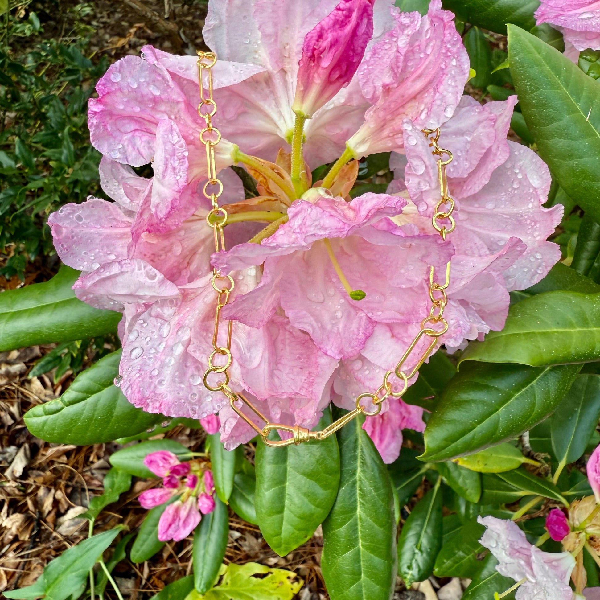 Beautiful new paperclip and round mixed chain with our signature push clasp for easy adding pendants. This looks great alone for layering or add your favorite treasure. This one is 18 inches in vermeil. It can be ordered in different sizes and materials.