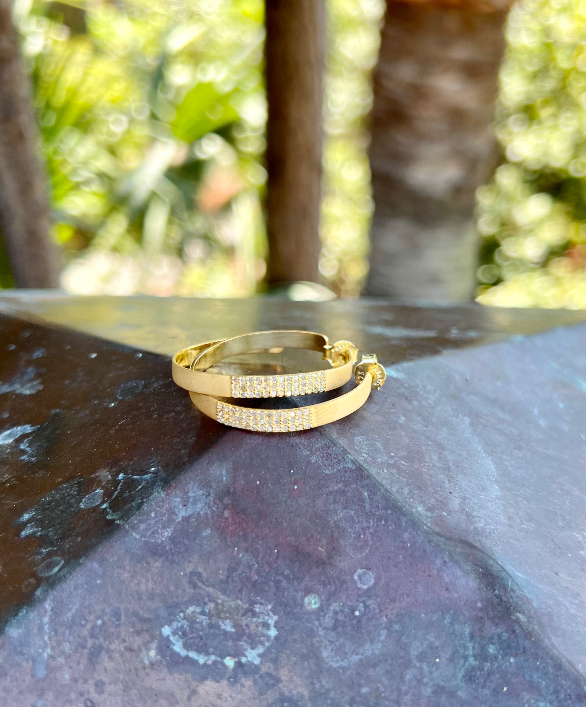 Wide hoop earring with center pave diamond detail. Very lightweight. 35mm size.