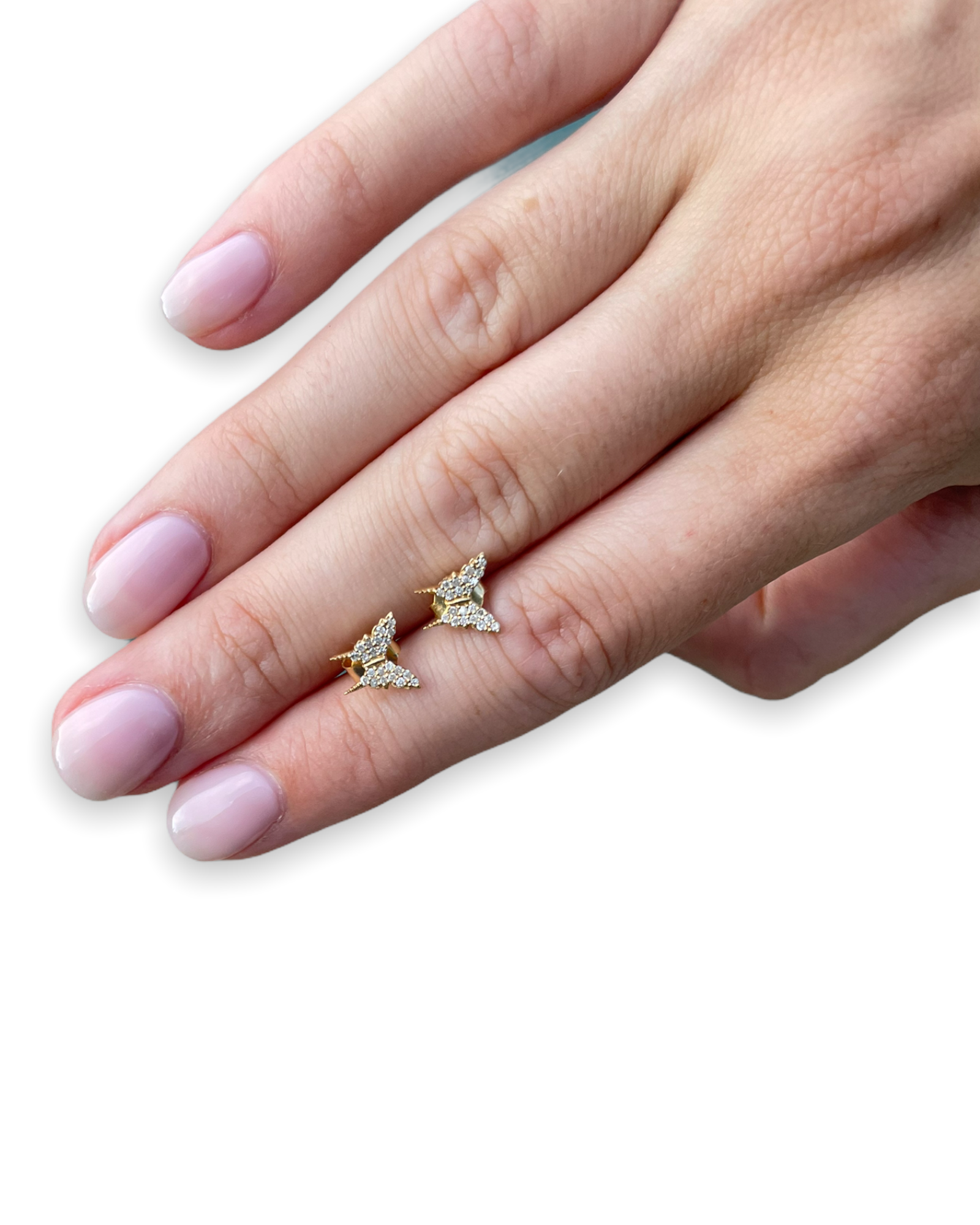 Our Papillon pave diamond butterfly stud earrings are a bit over 1\4 inch. Perfect everyday earrings!