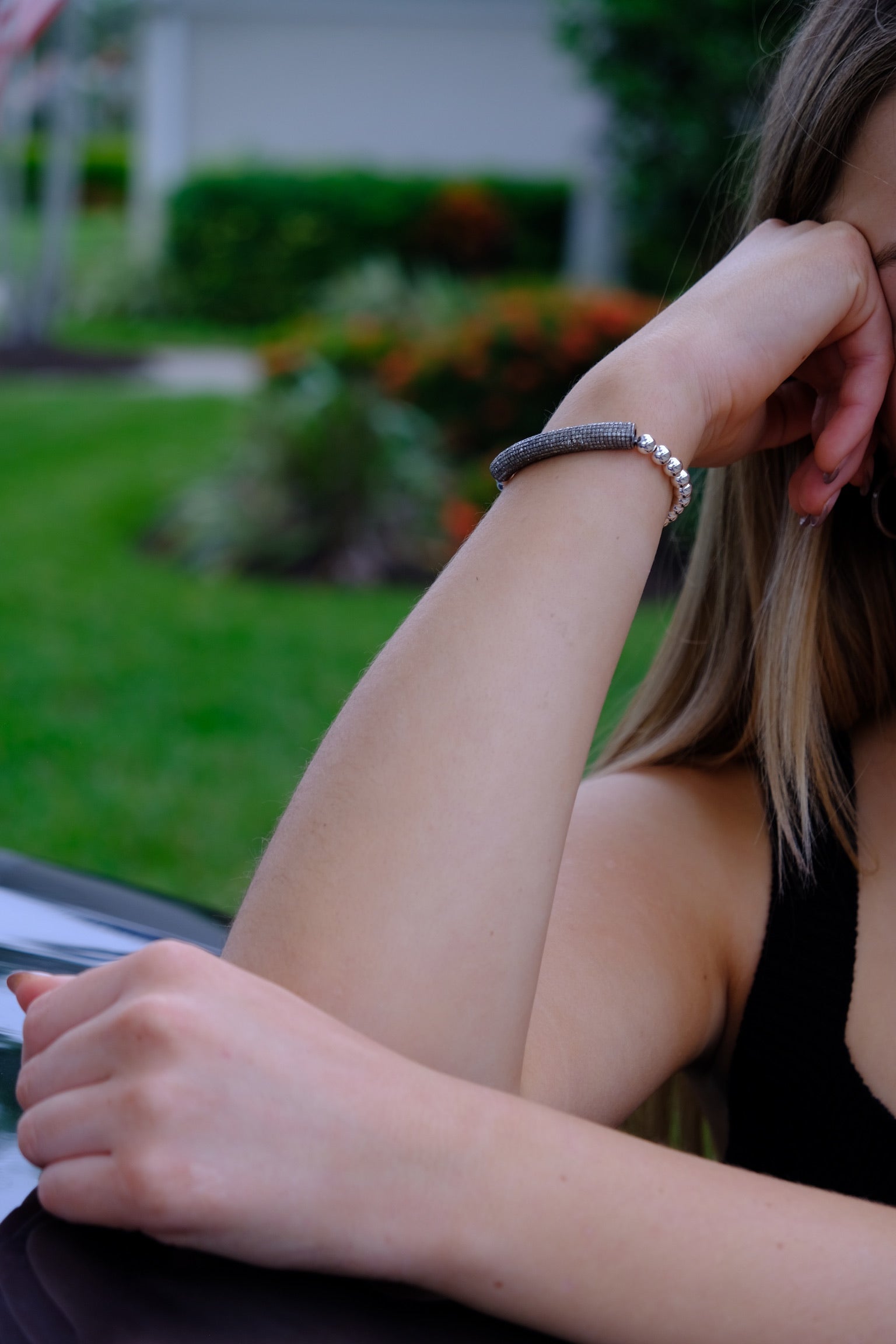 Our Diamond Bar bead bracelet features a 45mm diamond and antique sterling bar with 6mm sterling silver beads. This is beautiful alone or stacked with your favorite bracelets. Bead bracelets are so easy to wear with the stretch. Love them for everyday to glam up your wrist! 7 inches.