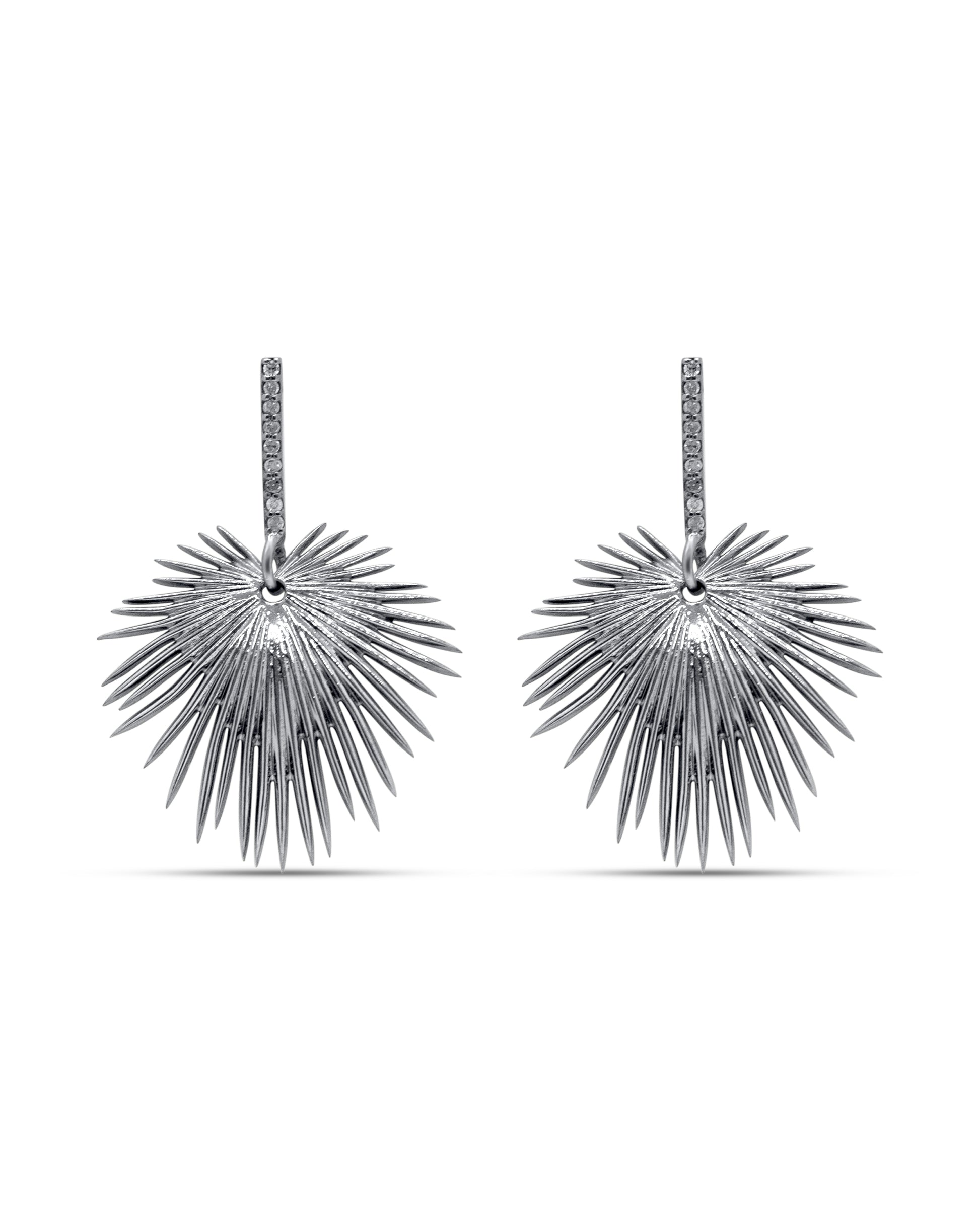 Conjured by the rustling sounds of palm trees on Kiawah Island, these diamond earrings bring you back to the marshland. The earrings are lightweight, like feathers. They are approximately 1.25 inches long and feature a diamond bar stud.